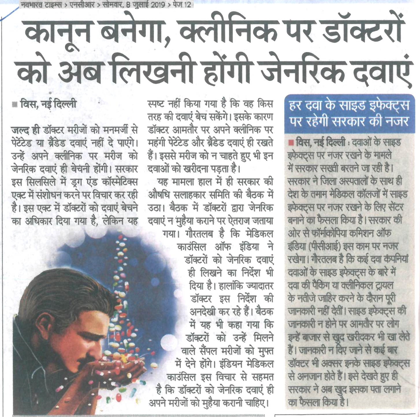 | News published in Navbharat Times (Hindi) dated 08/07/2019 | IPC |