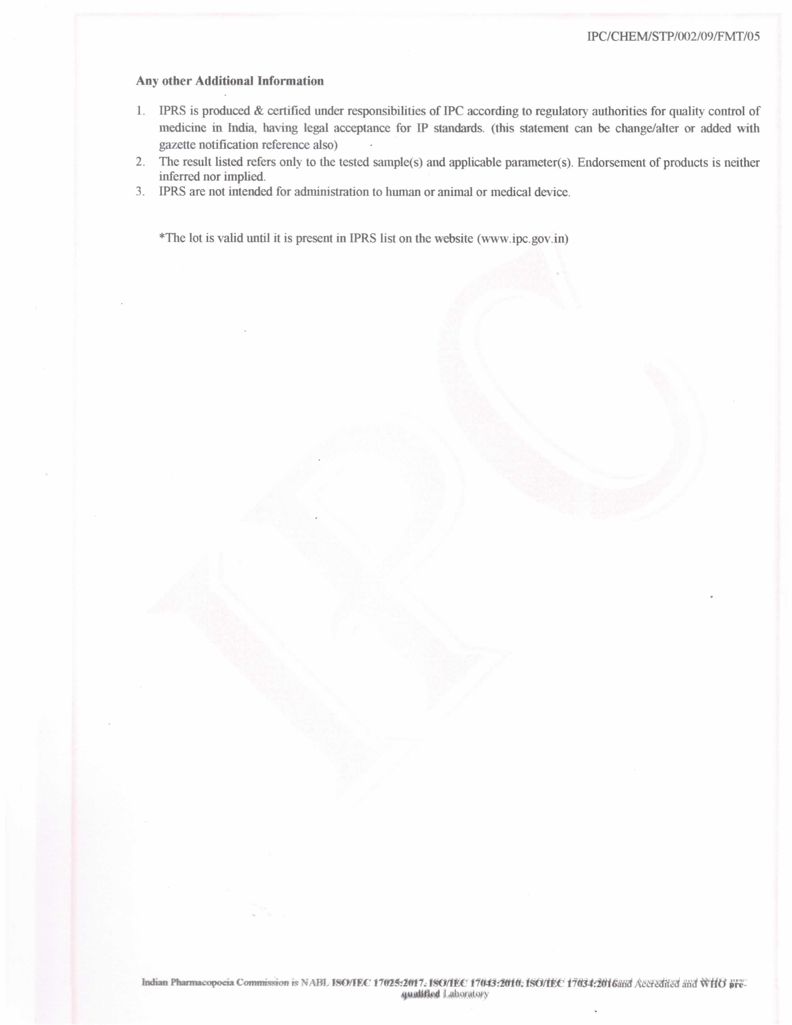 ## Second page of COA for all the IPRS is common. To open/download it please Click here.