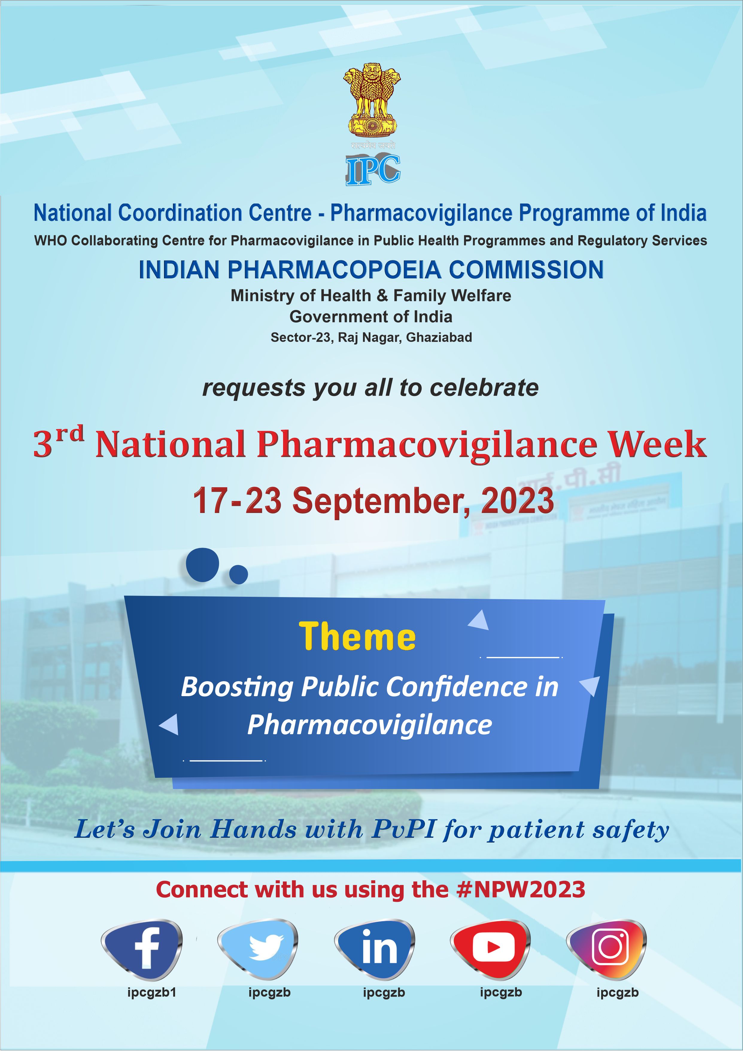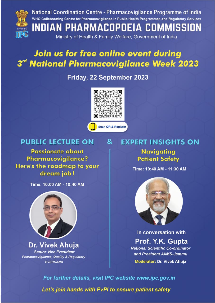 National Coordination Centre - Pharmacovigilance Programme of India, Indian Pharmacopoeia Commission is celebrating 3rd National Pharmacovigilance Week from 17-23 september 2023.