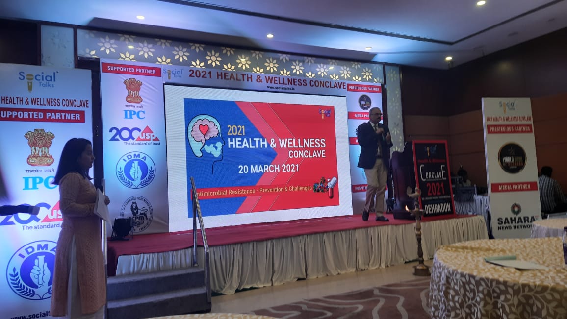Dr. Rajeev Singh Raghuvanshi participated in the Health & Wellness Conclave organised by Social Talks on 20th March 2021 in Dehradun. This conclave was supported by the Indian Pharmacopeia Commission, United States Pharmacopeia, Indian Drug Manufacturers Association & National Chamber of Pharmaceutical Manufacturers of Sri Lanka. Conclave was inaugurated by Sh. Ganesh Joshi, Hon'ble Cabinet Minister of the Uttarakhand Government. During the conclave Dr. Raghuvanshi delivered a talk on 'IPC's Role for Ensuring Quality and Promoting Rational Use of Antimicrobials in India'. Participants from AIIMS, IIT Roorkee, Pharma Industries and Universities attended the conclave.